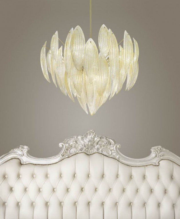 The Murano glass petals are available in either White, Transparent, Bronze, Aquamarine, Silver-Leaf or Gold-Leaf.
