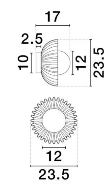 Diameter 23.5cm x Projection 17cm x Diameter Of Backplate 10cm.