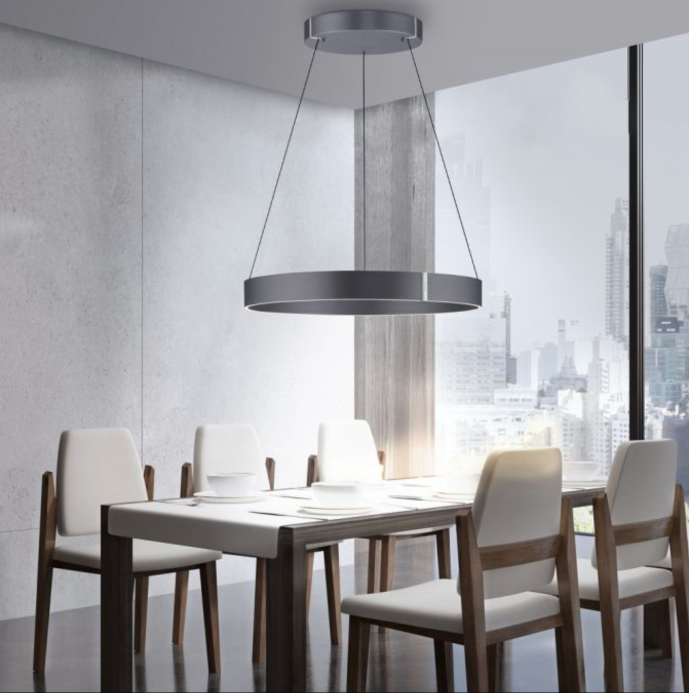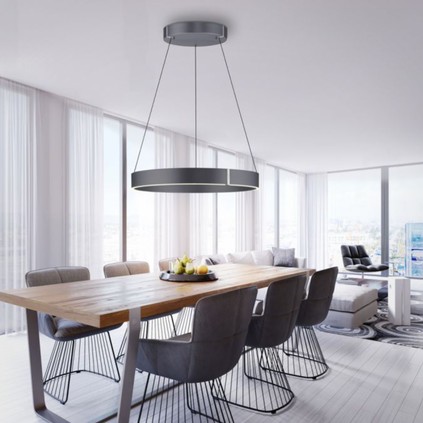 Eclip Dark Grey Anodised Remote Controlled Height Adjustable LED Ring Pendant - ID 13676