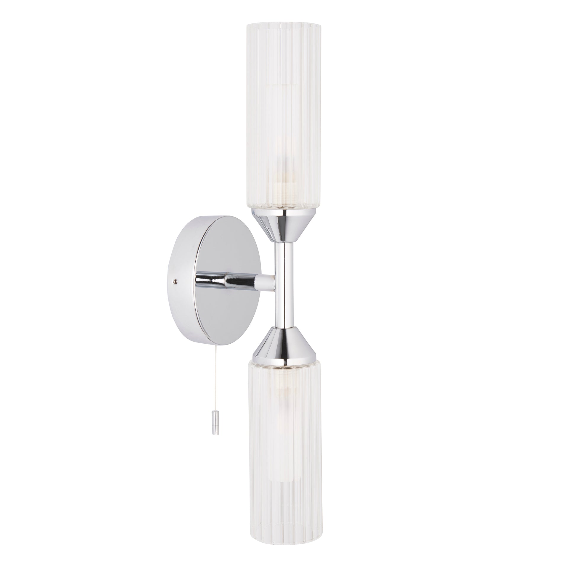 Polished Chrome & Ribbed Glass Two Lamp IP44 Wall Light - ID 11638