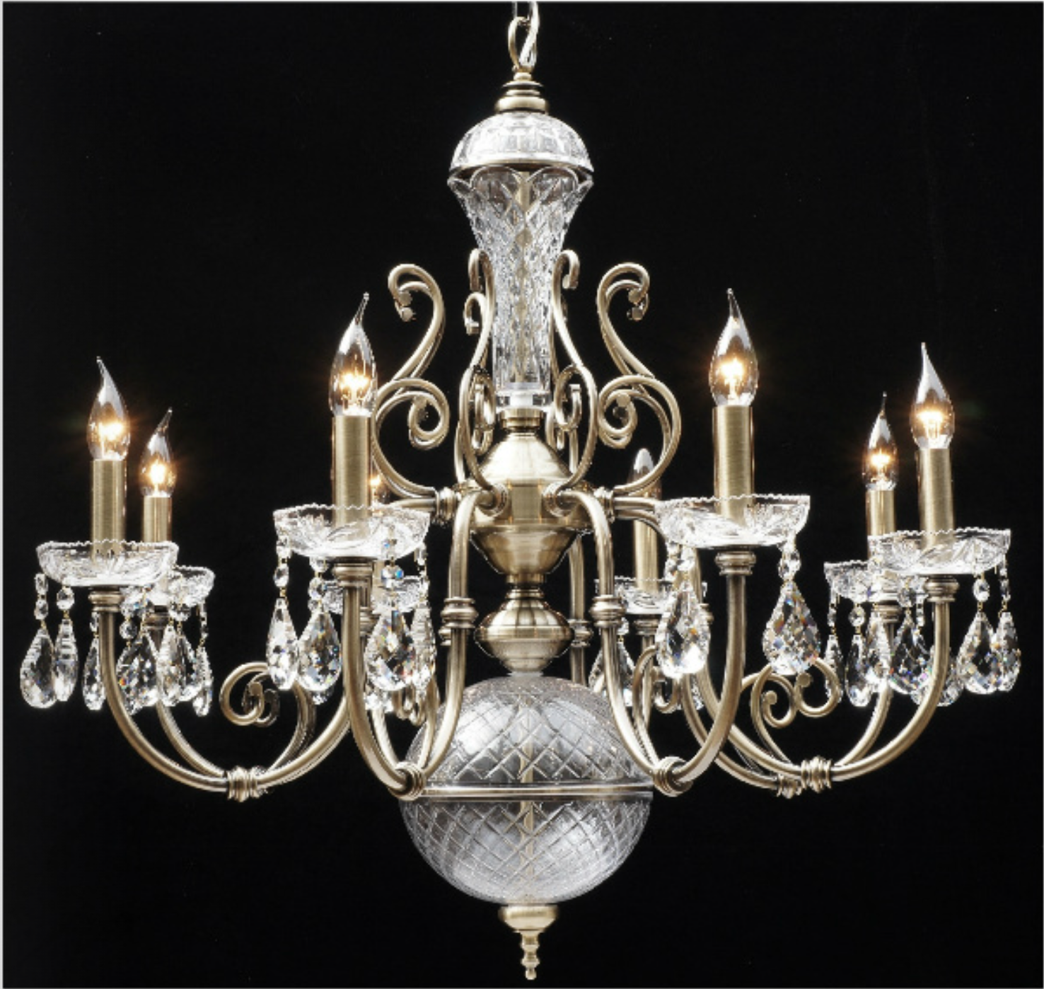 REM 8 Arm Antique Brass Chandelier With Glass & Crystal Detail - ID 11512