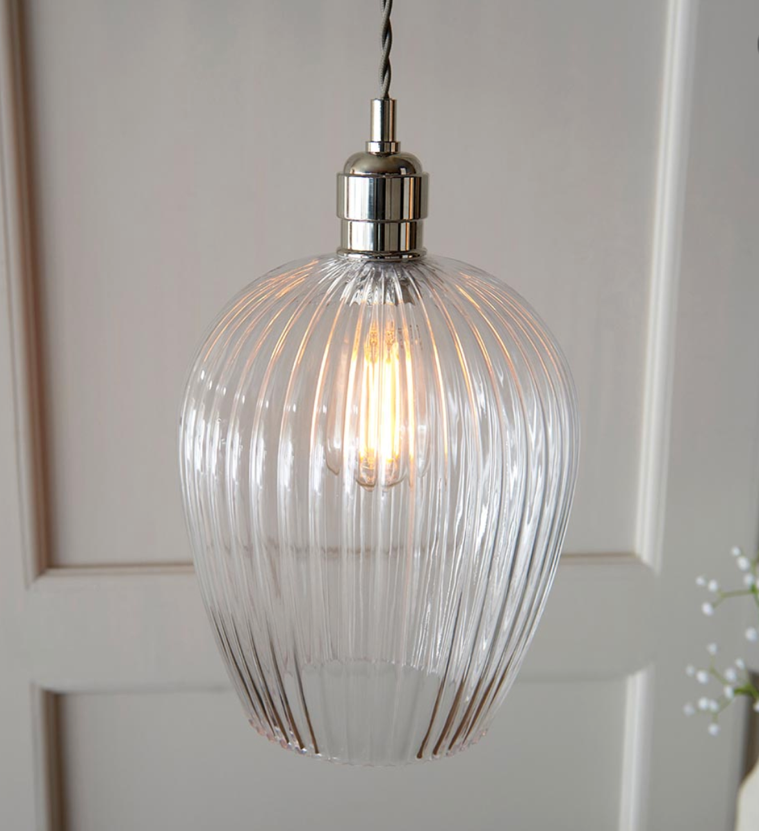 Ribbed Glass & Bright Nickel Small Pendant - ID 12972