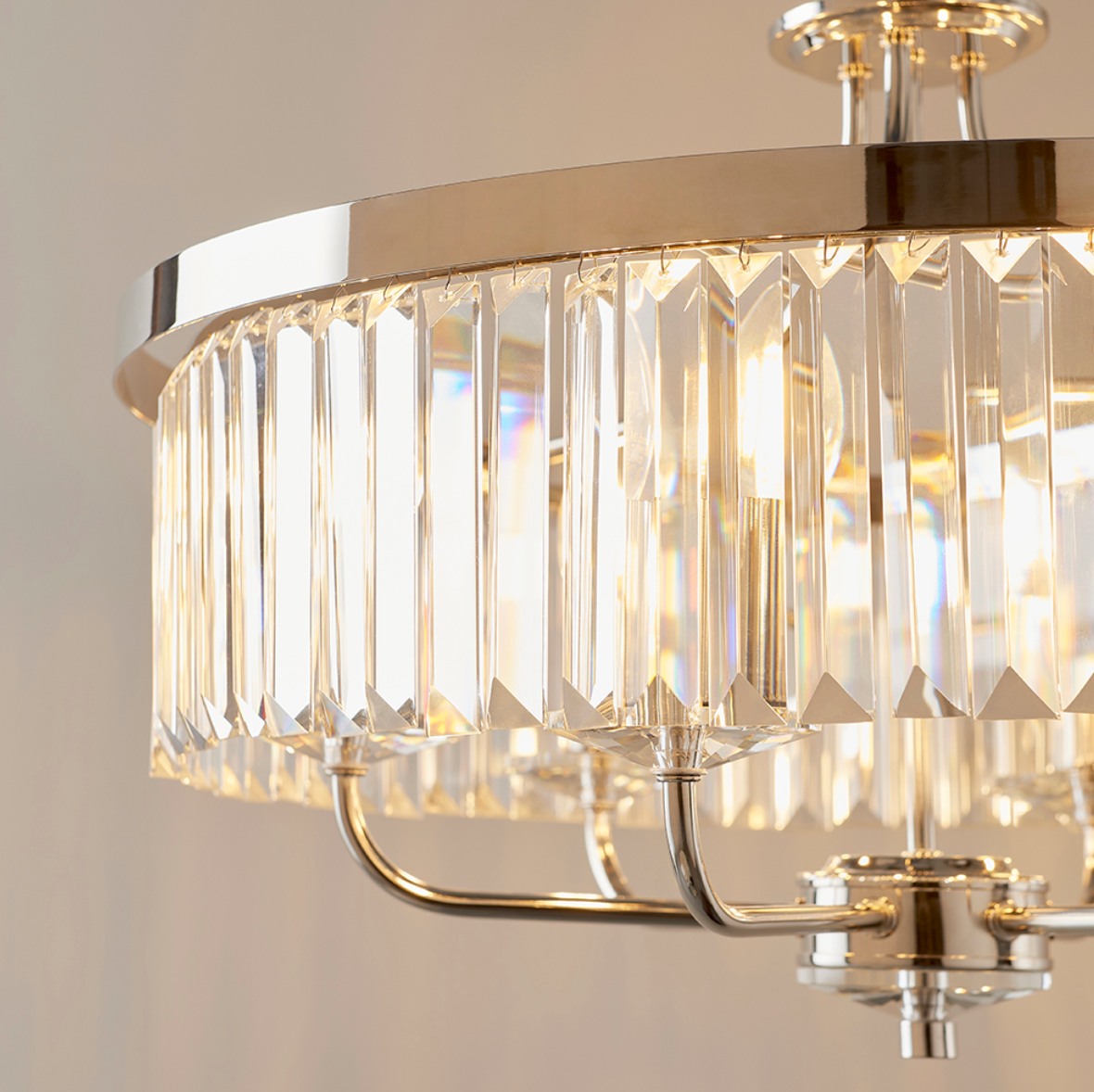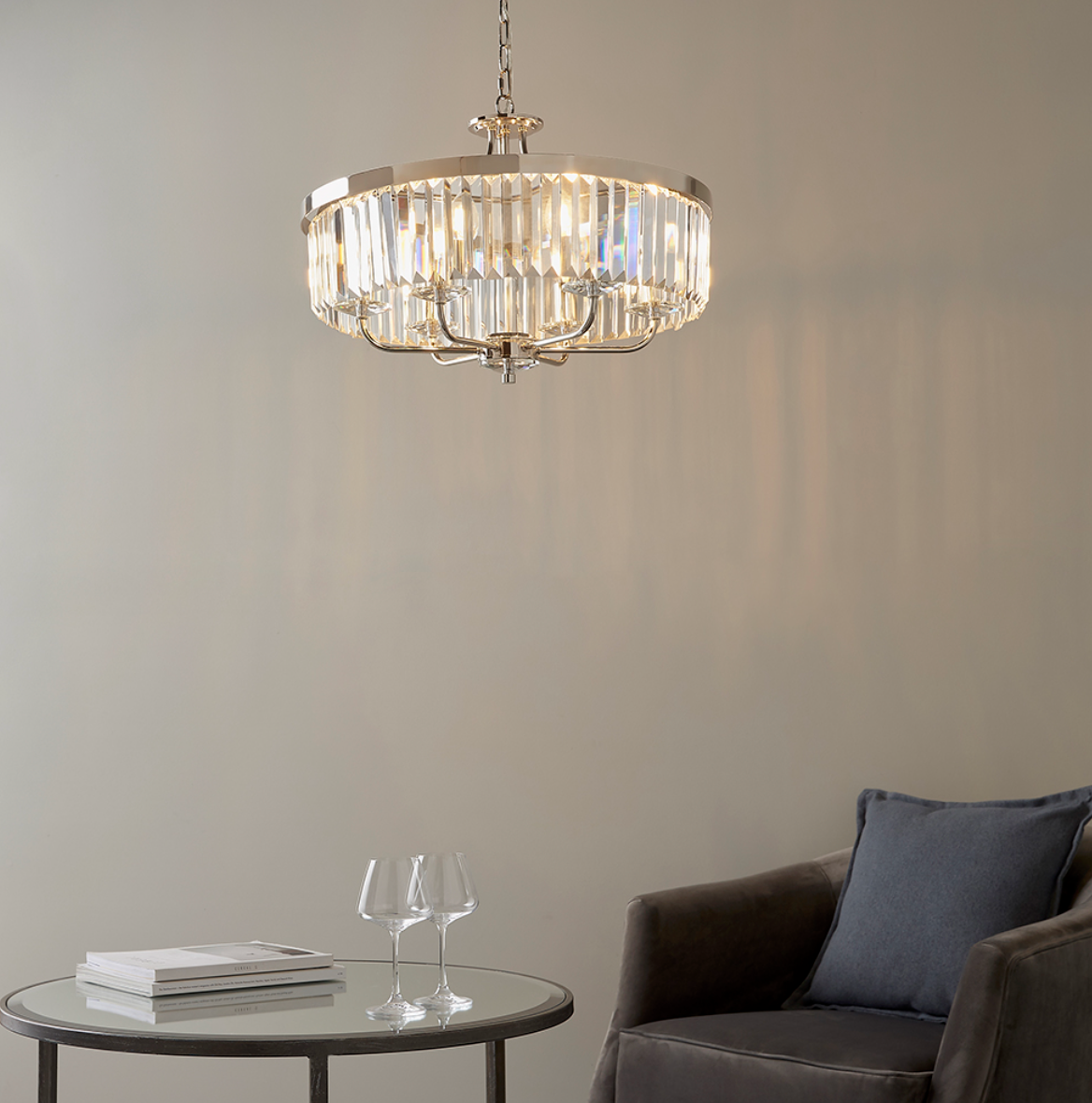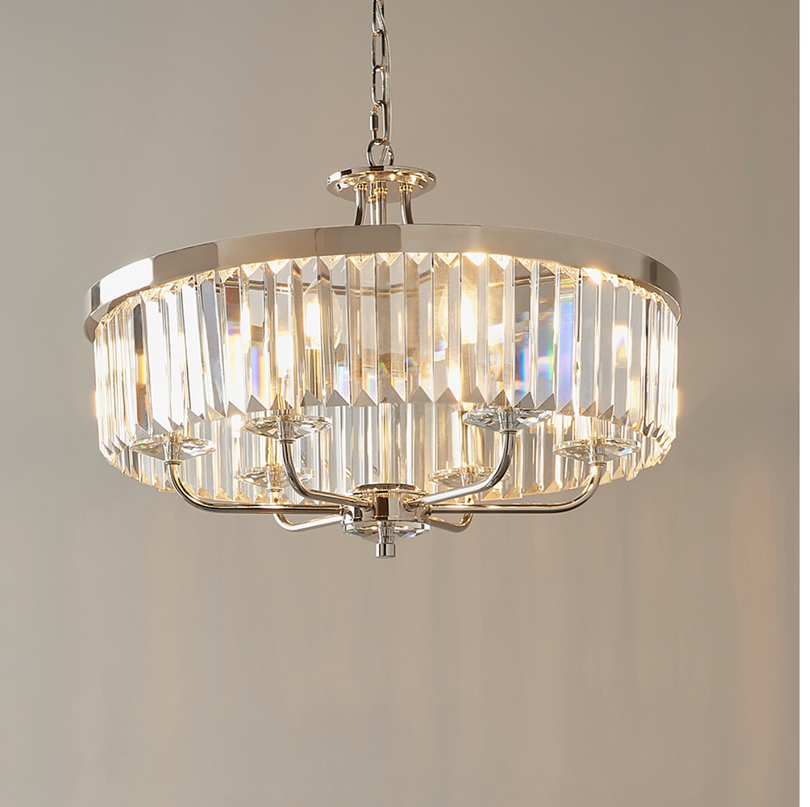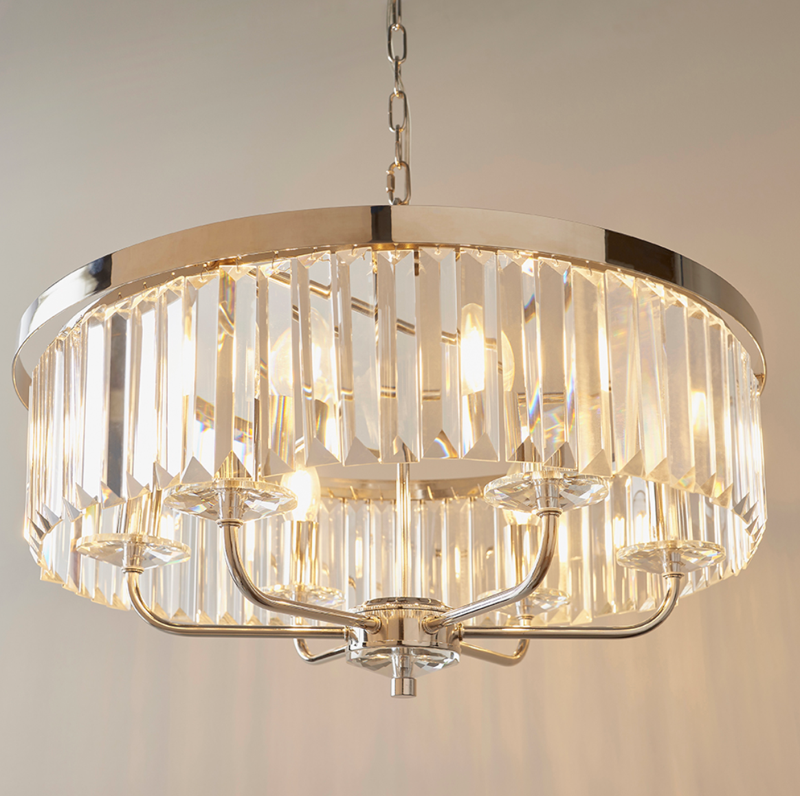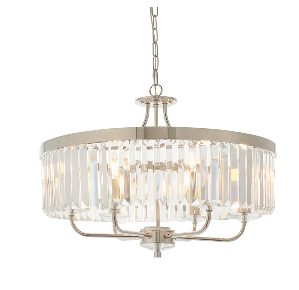 Round Bright Nickel Cut Glass Chandelier - ID 11745