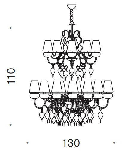 Fairytale fantasies and attractive dream symbols give light to very high class and elegant lightings, stars of luxurious and surreal atmospheres. Sophisticated volutes surrounded by Murano glass pendants made from sparkling bronze powder, royal velvet frames in nuances of gold light, iridescent lilac and maroon, lights made exciting by charming organza lampshades, give a feeling of total privilege to surrounding ambiences.