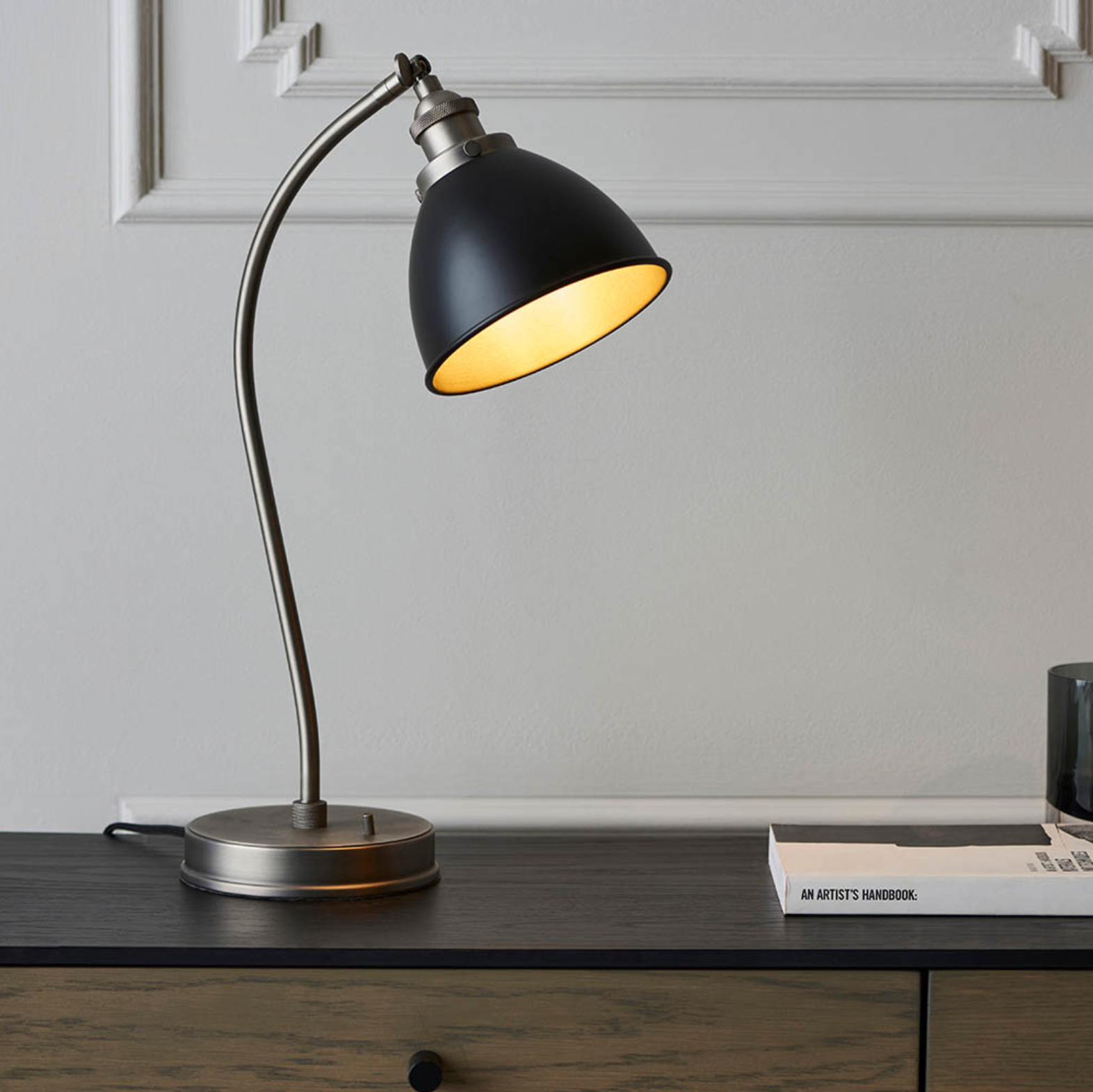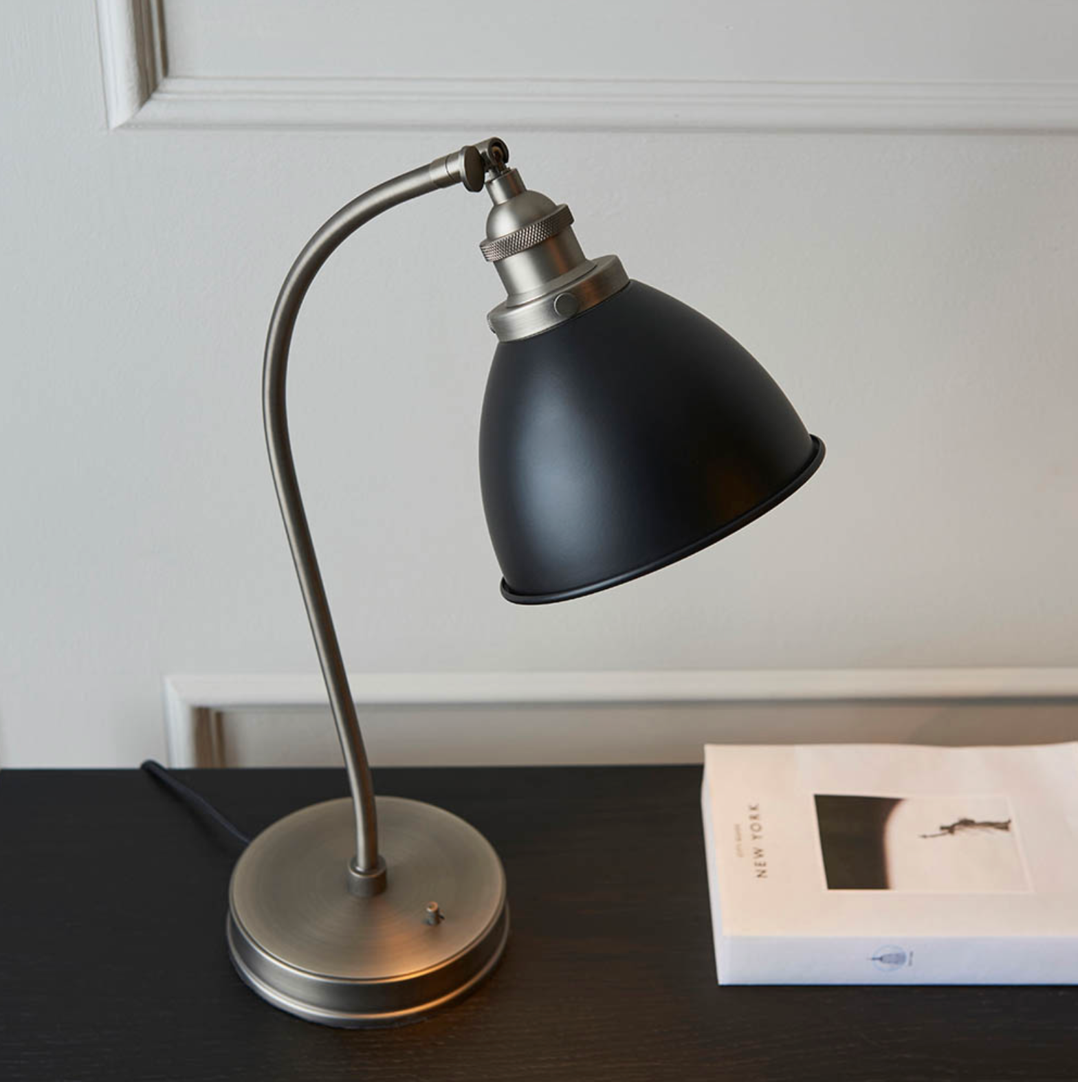 An authentic 'resto' style adjustable table light, finished in matt black paint with aged pewter plated details. Featuring an adjustable knuckle and accessible on/off switch, pair this table light with filament LED lamps for that perfect industrial style. The perfect addition for today's stylish homes to create that on trend bar, bistro look.