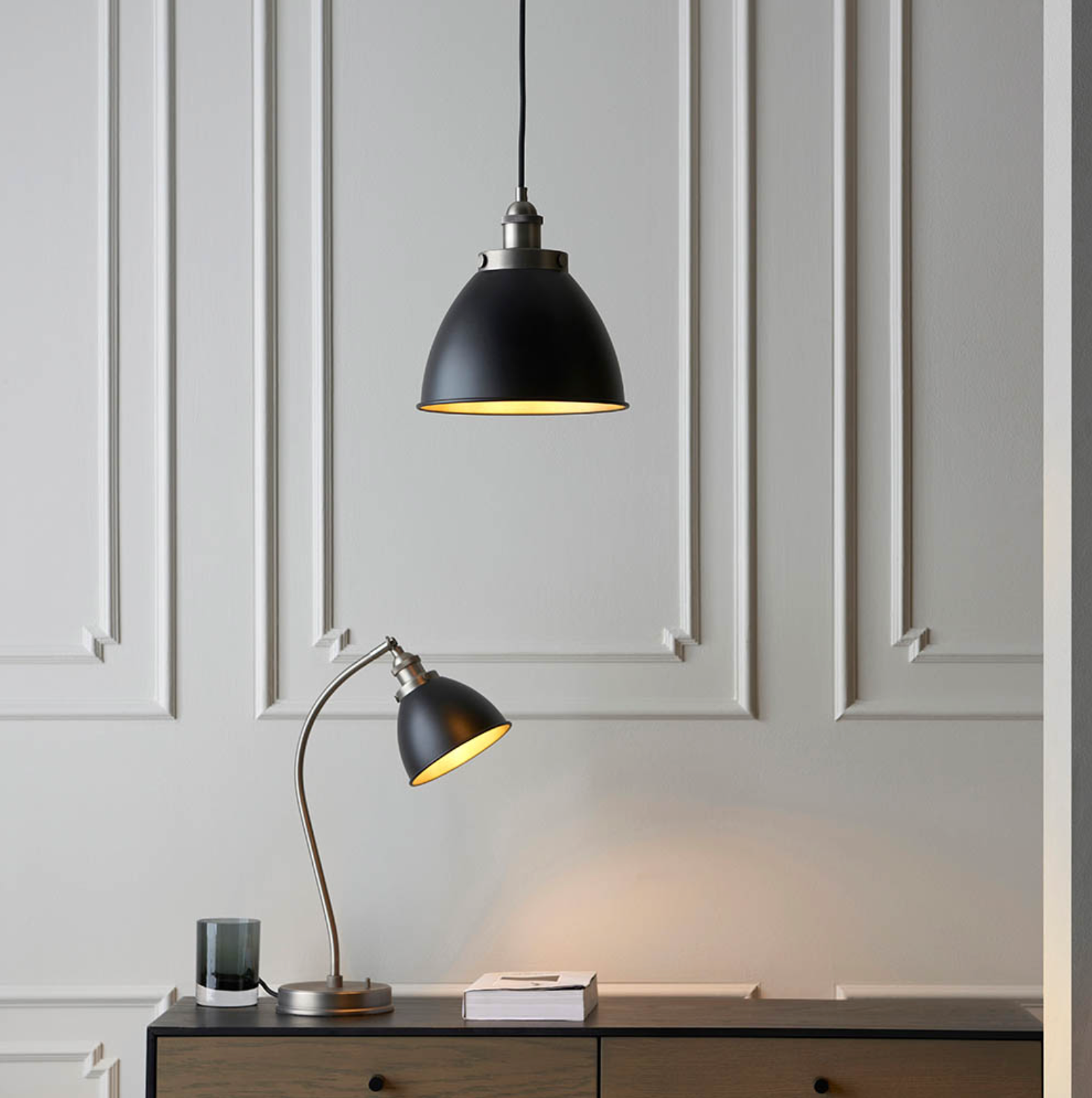 Twin with E14 LED filament lamps to complete the look