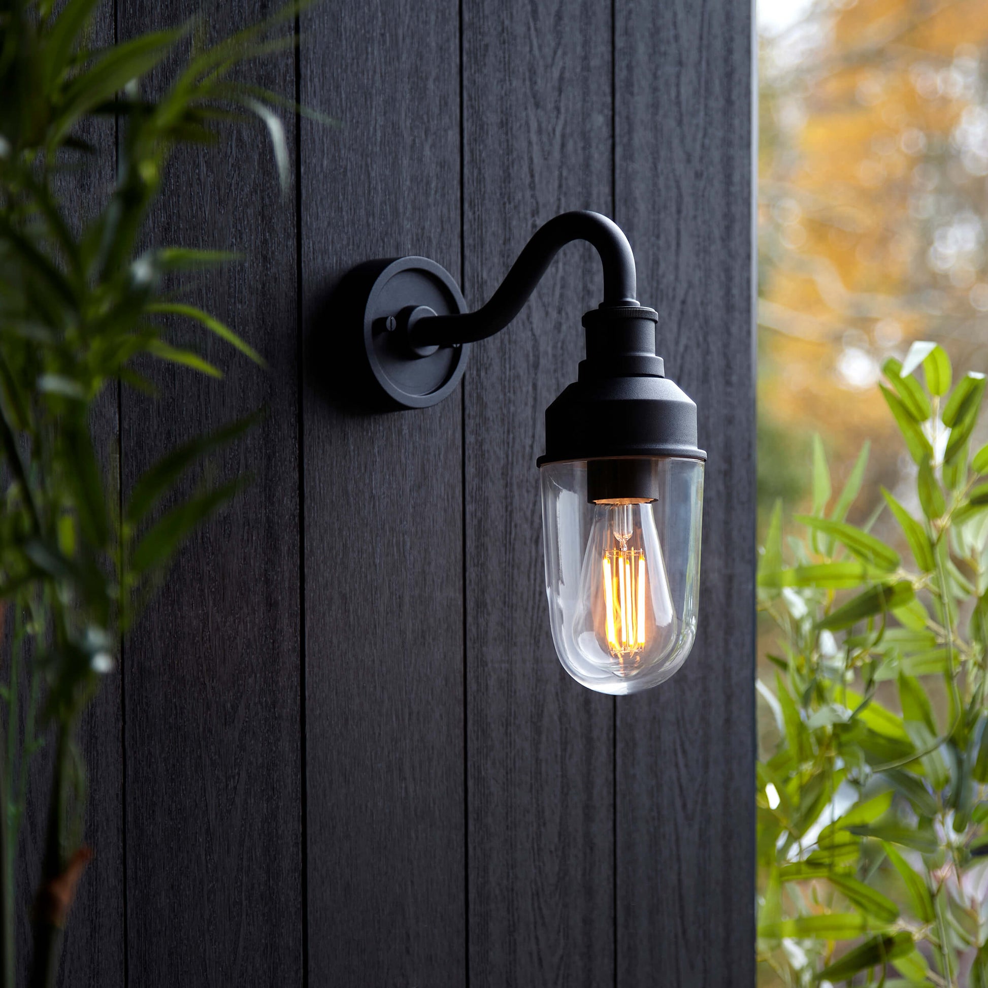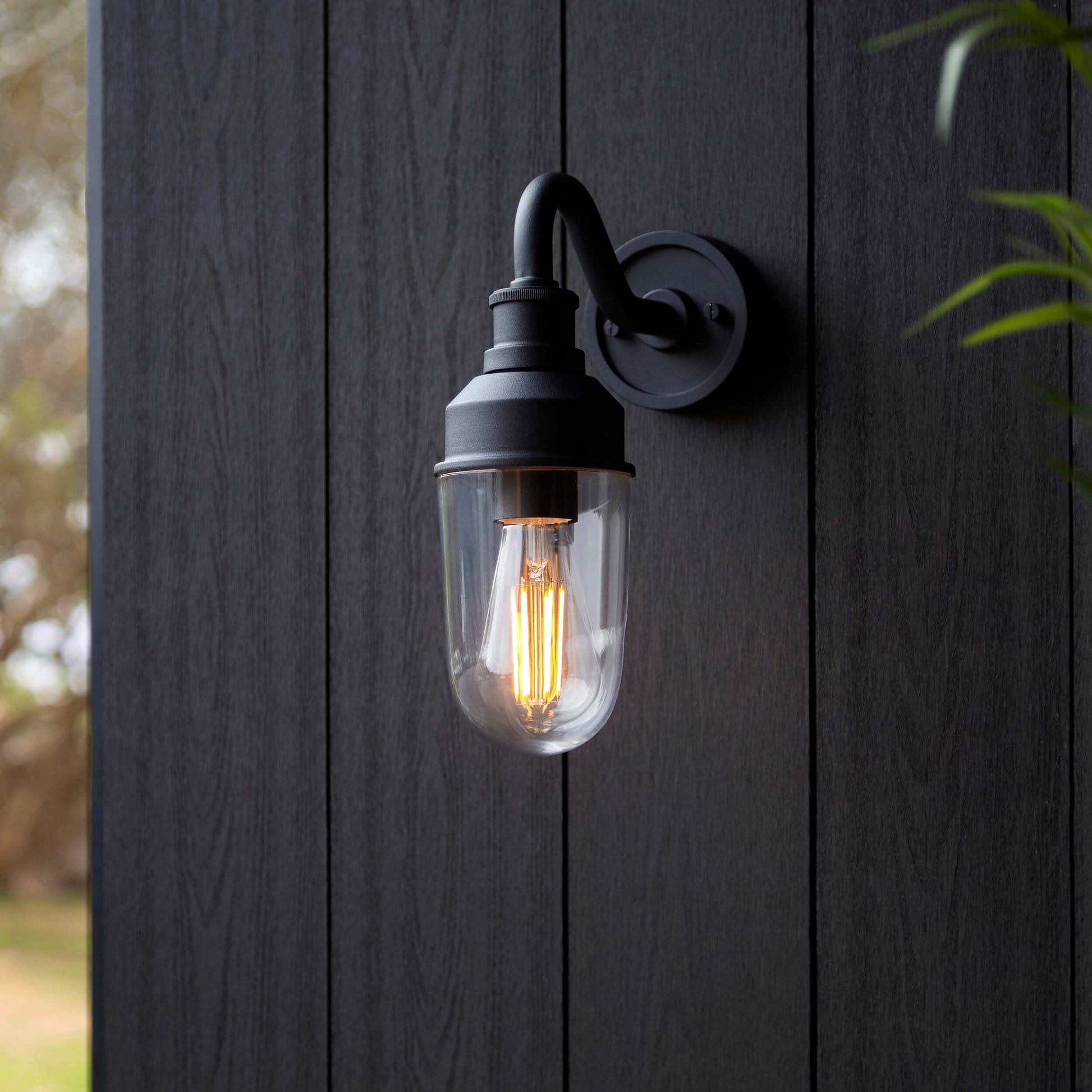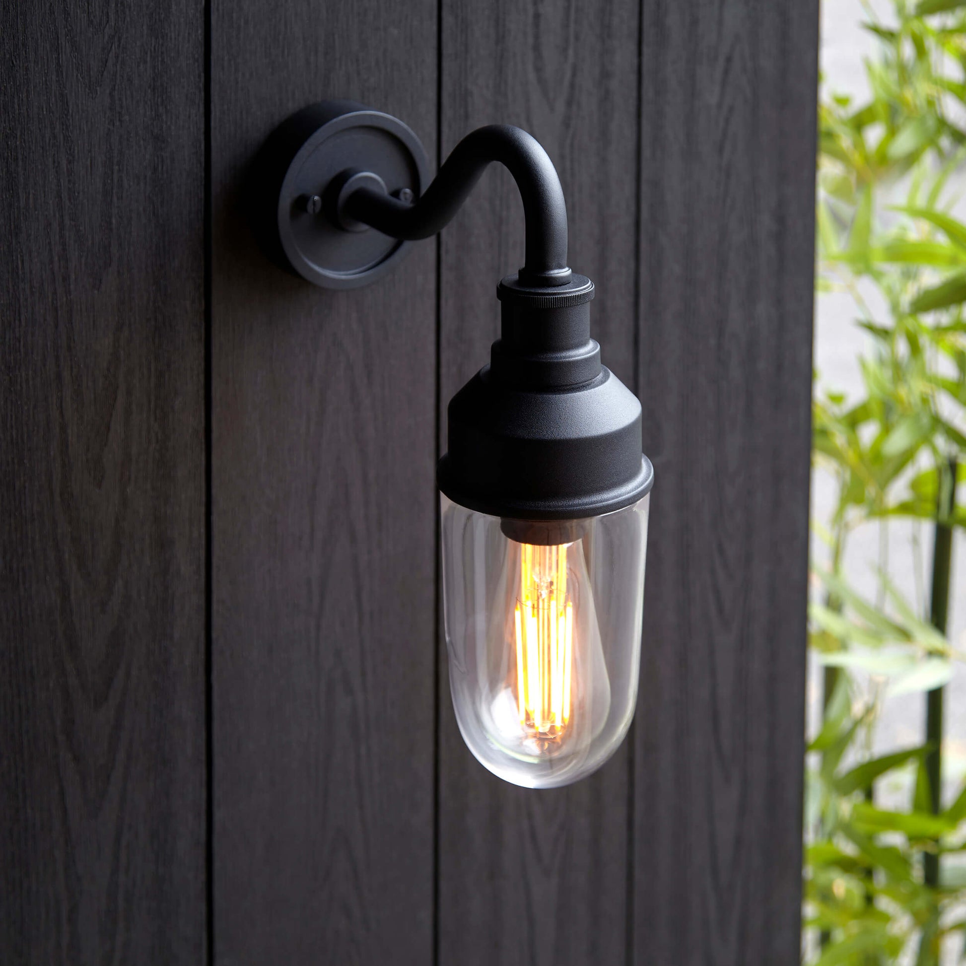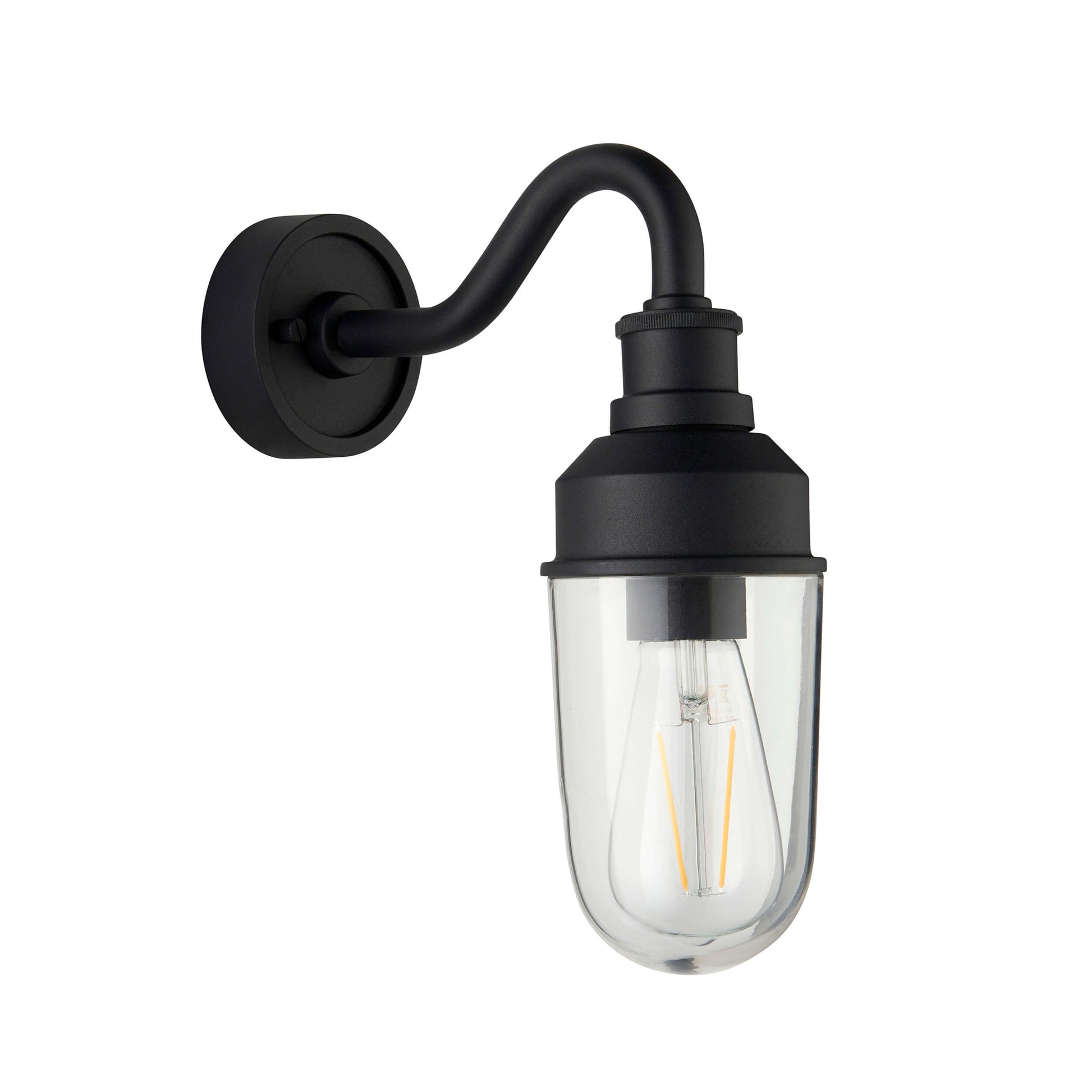 Textured Black Curved Arm Wall Light With Clear Glass - ID 12496