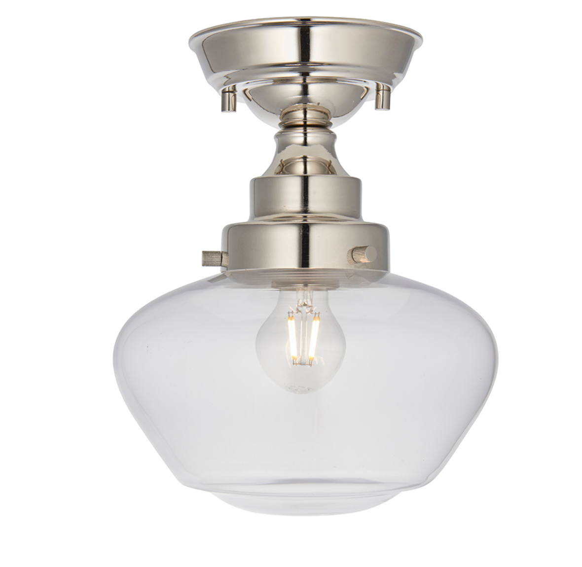 Timeless bright nickel semi flush with clear glass - ID 11729.