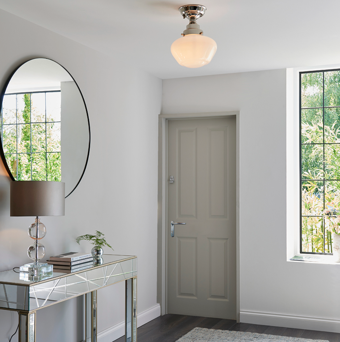 Timeless bright nickel semi flush with opal glass - ID 11730.