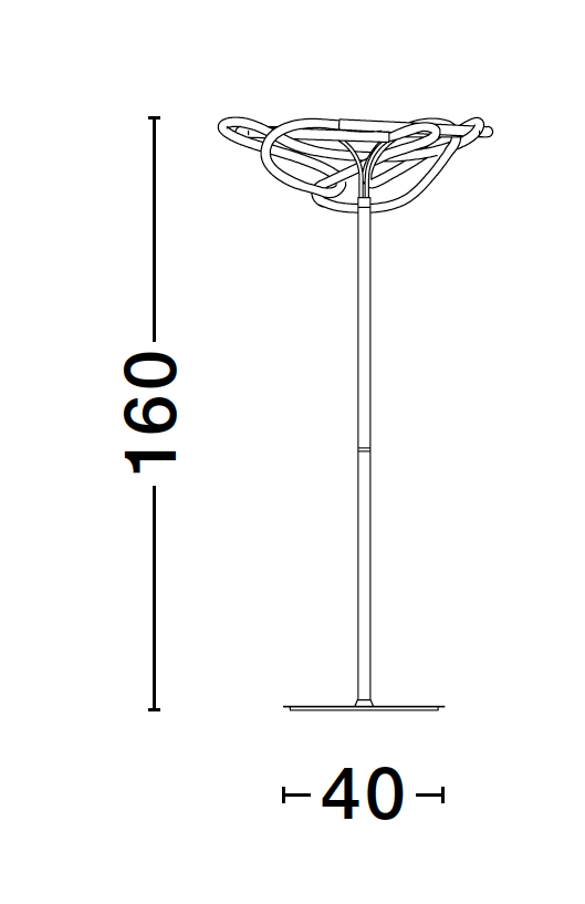Gold aluminium floor lamp featuring organic swirling tubes which act as a diffuser for the integrated LEDs