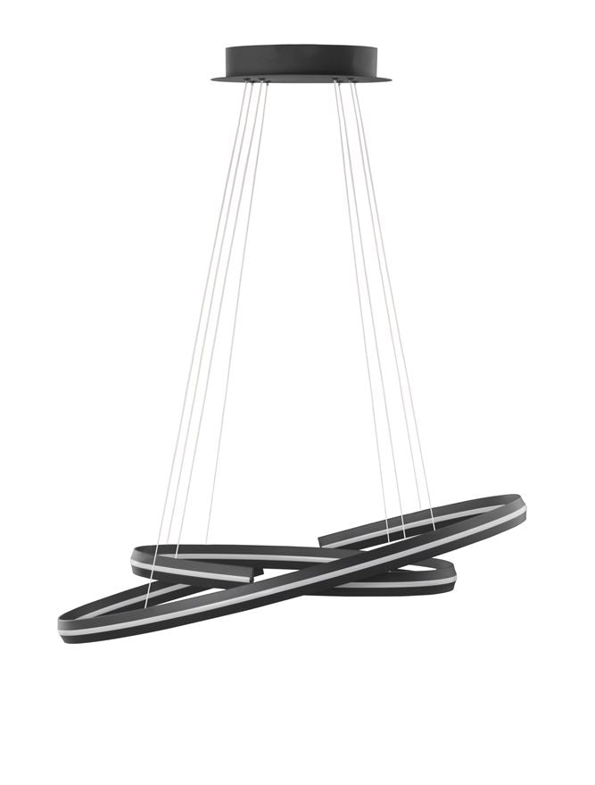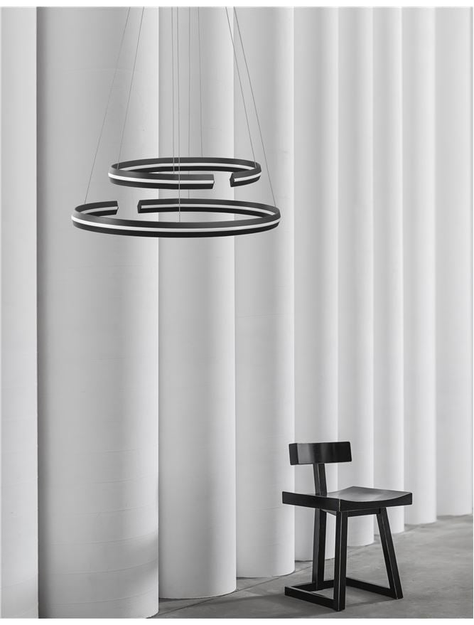 Sandy black aluminium pendant with a unique split feature with opal diffused LEDs,