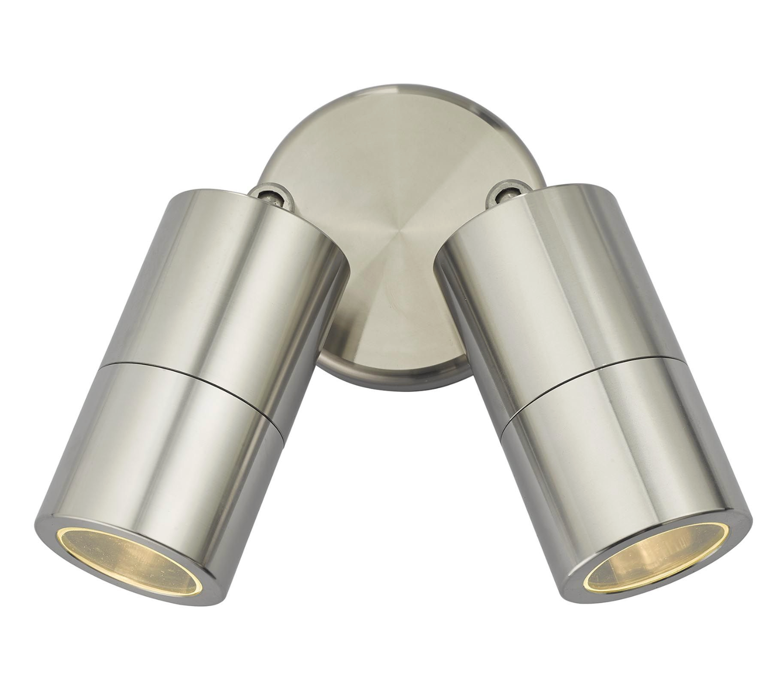 Satin Aluminium Outdoor IP65 Wall Mounted Twin Spot Light.