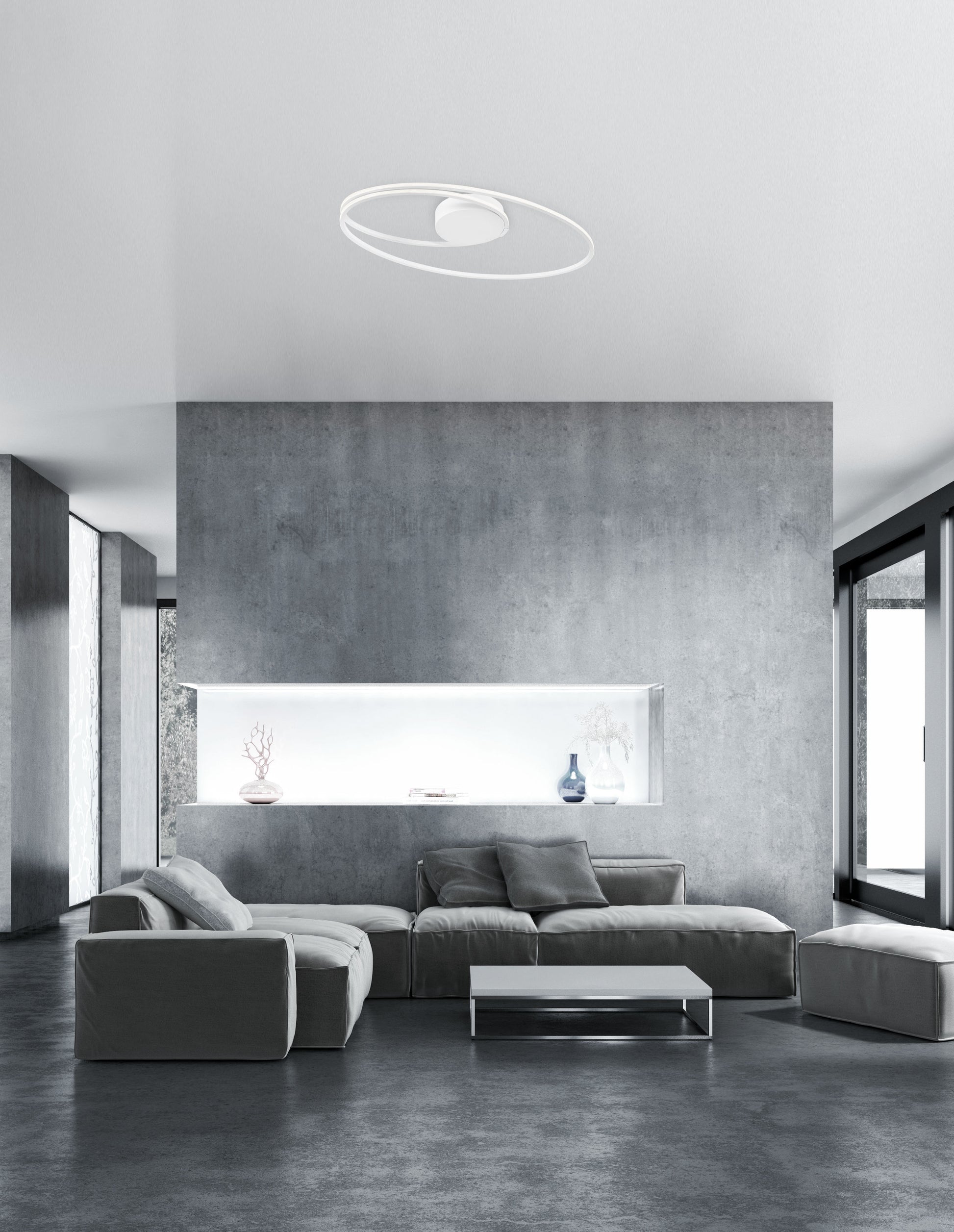 A stylish flush ceiling light featuring a delicate and continuous LED loop.