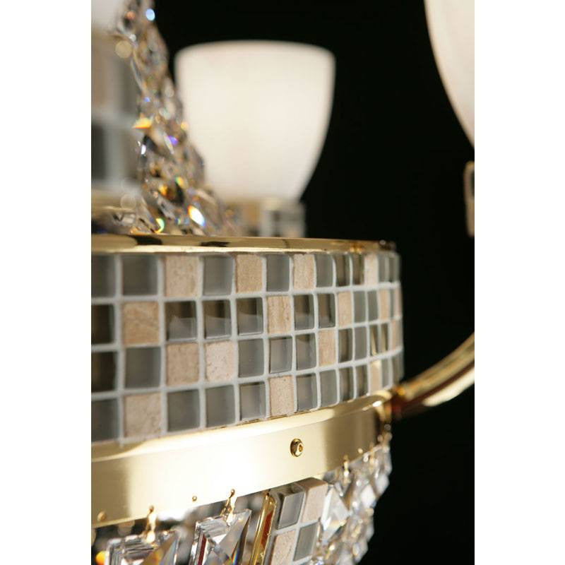 This new collection that evokes hints of the Empire style, is a true expression of quality engineering and perfect conception. The color combinations of pieces of light and dark marble mosaic, and metal chromed finishes, are opposed to facets of frosted crystals.
