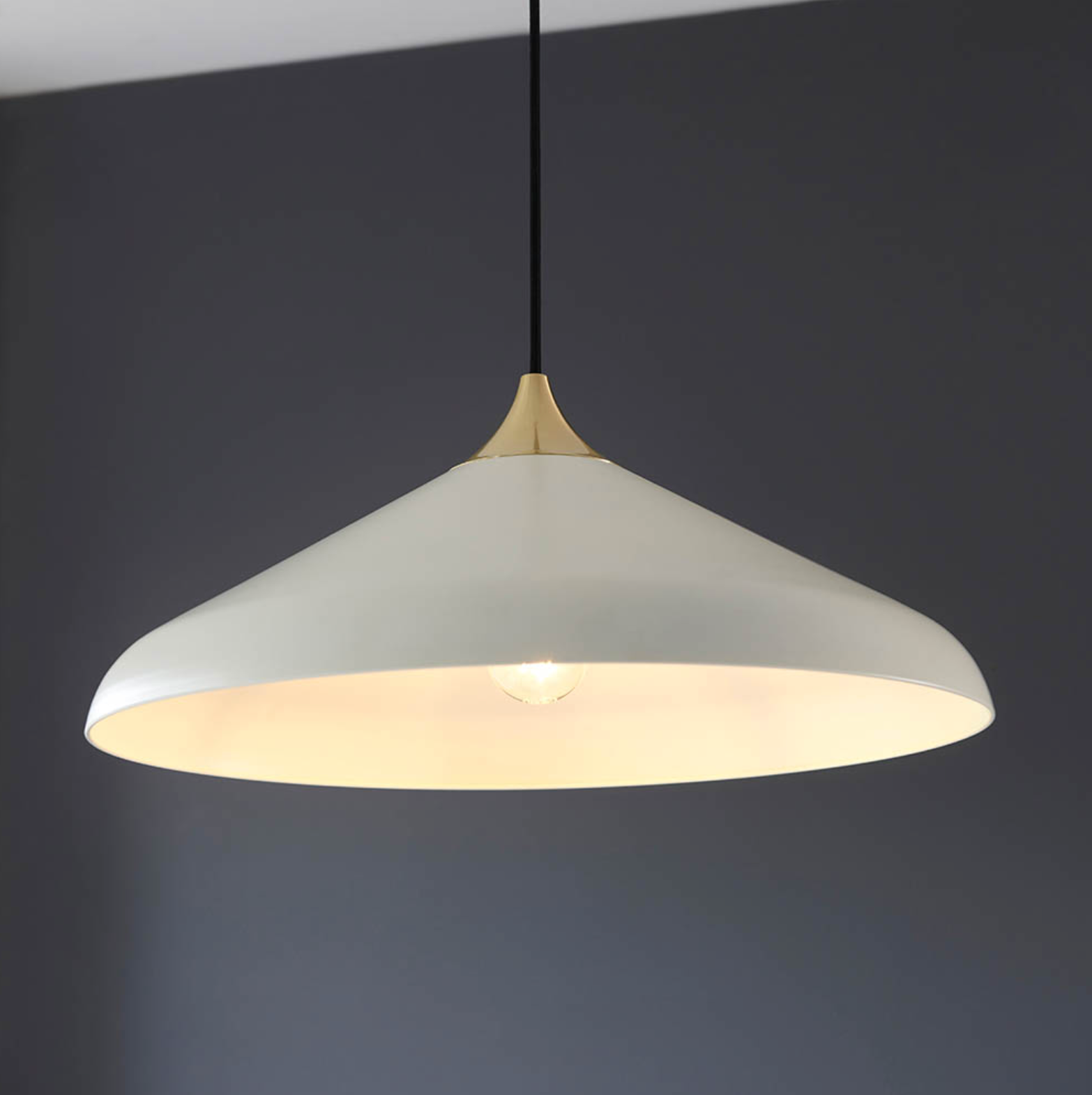 Warm White Coned Pendant with Brushed Brass Plate - ID 12101