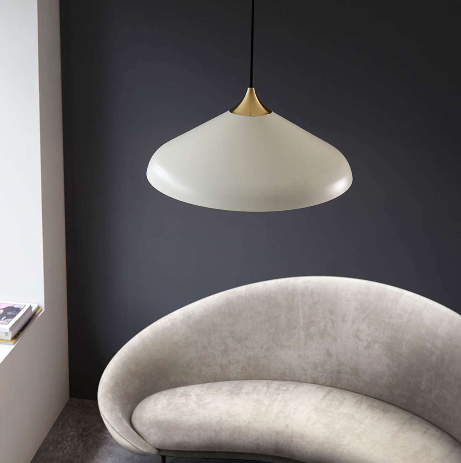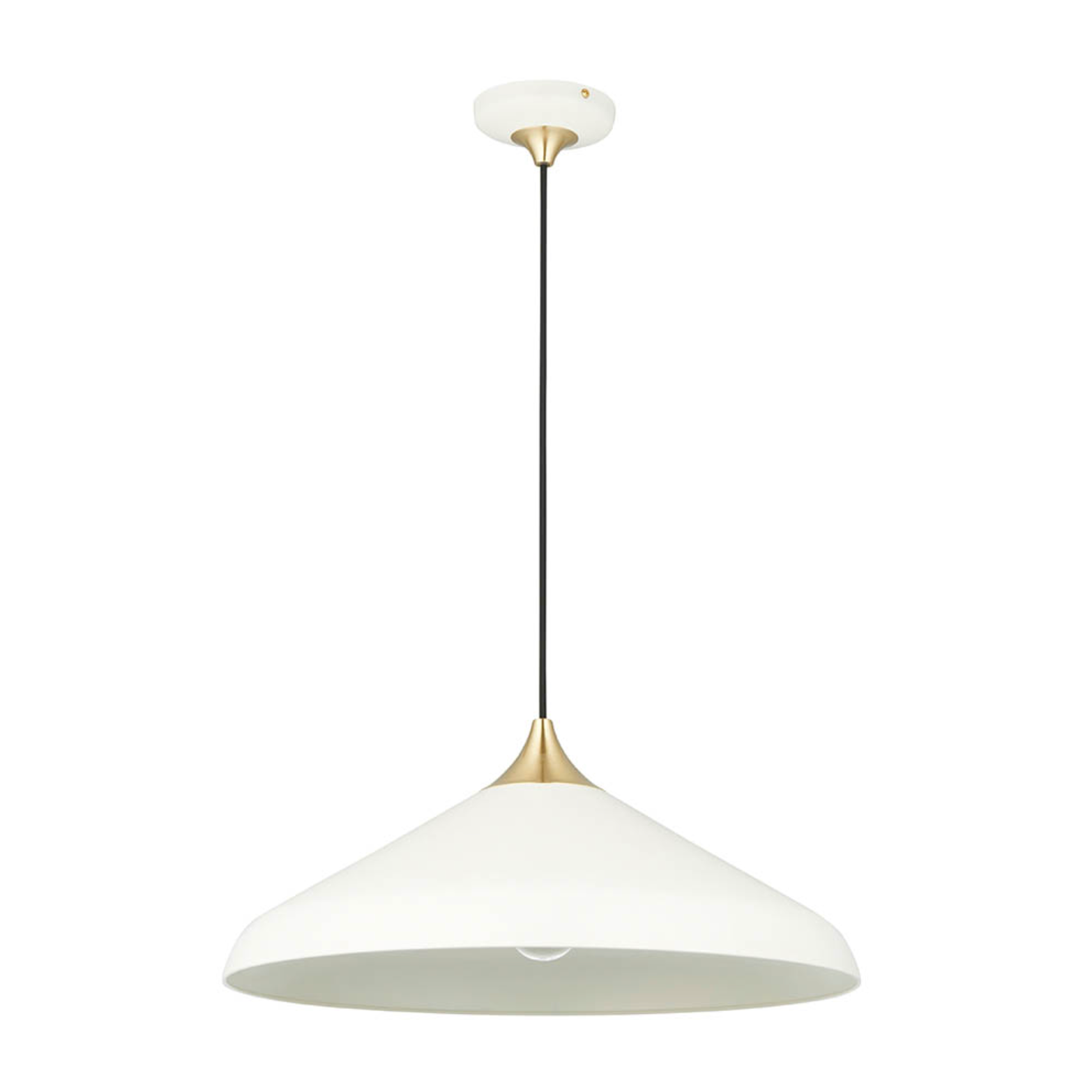 Warm White Coned Pendant with Brushed Brass Plate - ID 12101,